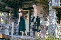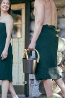 En midjehandduk som sitter bra ger händerna fria till annat – till exempel att grilla eller lägga in mer ved i bastuugnen. Kenno-tygets mjuka yta känns behaglig mot huden, och materialet absorberar fukt bra och torkar snabbt efter användning.