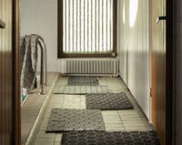 Ge lite kant till ditt badrum eller bastuklärum med Platta badmatta. Denna högabsorberande vändbara matta kan användas med båda sidorna uppåt - vit eller grå.